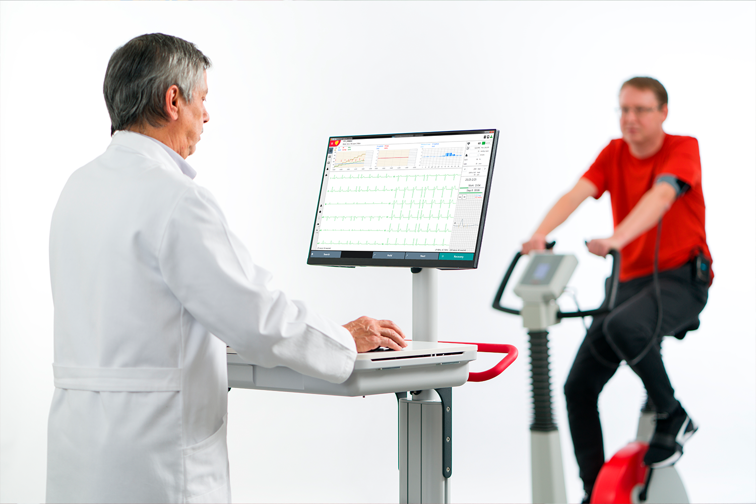 CARDIOVIT FT-1 puede escalar a prueba de esfuerzo acoplándolo con el dispositivo de ECG esfuerzo CARDIOVIT CS-104 y con un cicloergómetro, como el ERG 911 HK EASY/SMART, que es un ergómetro de manivela al que se le puede quitar el asiento para adaptarse a los pacientes que están en silla de ruedas. La prueba de esfuerzo CS-104 combina todas las funciones esenciales en un sistema integrado. Incluye los programas de análisis de ECG, ETM y ETM Sport, estación de trabajo para analizar los datos y el módulo inalámbrico MS-12 blue que le permite adqurir el ECG de manera cómoda. Y para mostrarle que nuestras soluciones están pensadas para acoplarse y simplificar su trabajo, CARDIOVIT CS-104 también está disponible en versión solamente software. Así que basta instalarlo en su computadora para que pueda hacer pruebas de esfuerzo y también ECG reposo, y ritmo en reposo de hasta 20 minutos. ¿Qué le parece?